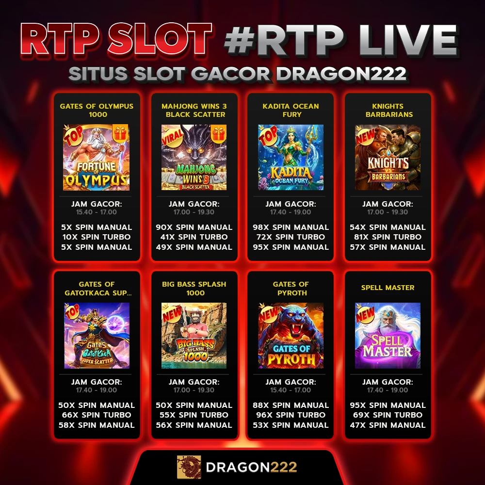 Situs terbaru anti blokir hari ini! Link pola RTP SLOT gacor dari DRAGON222 resmi dengan fitur RTP LIVE terakurat yang menyediakan rumus bocoran RTP Pragmatic Play dengan winrate tertinggi.